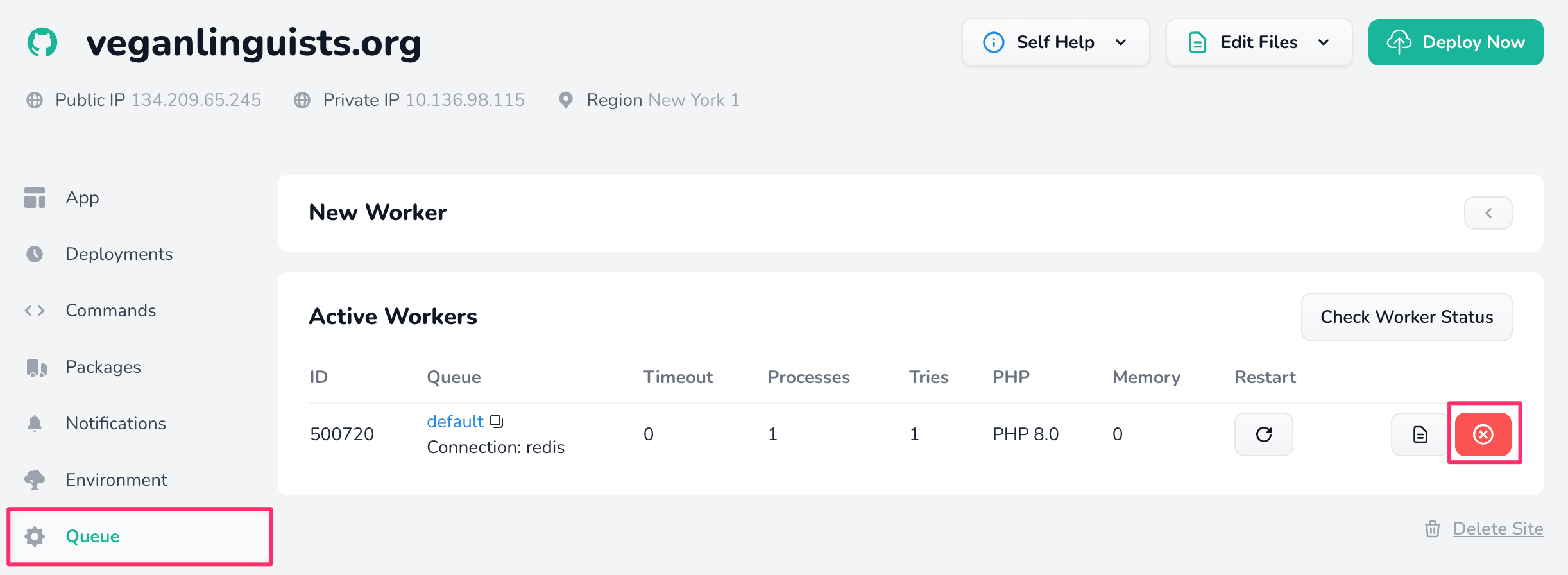 First, follow the instructions on how to set up a queue worker. Aside from the working directory, use the same settings as the current worker (likely default). After that, delete the old queue worker: